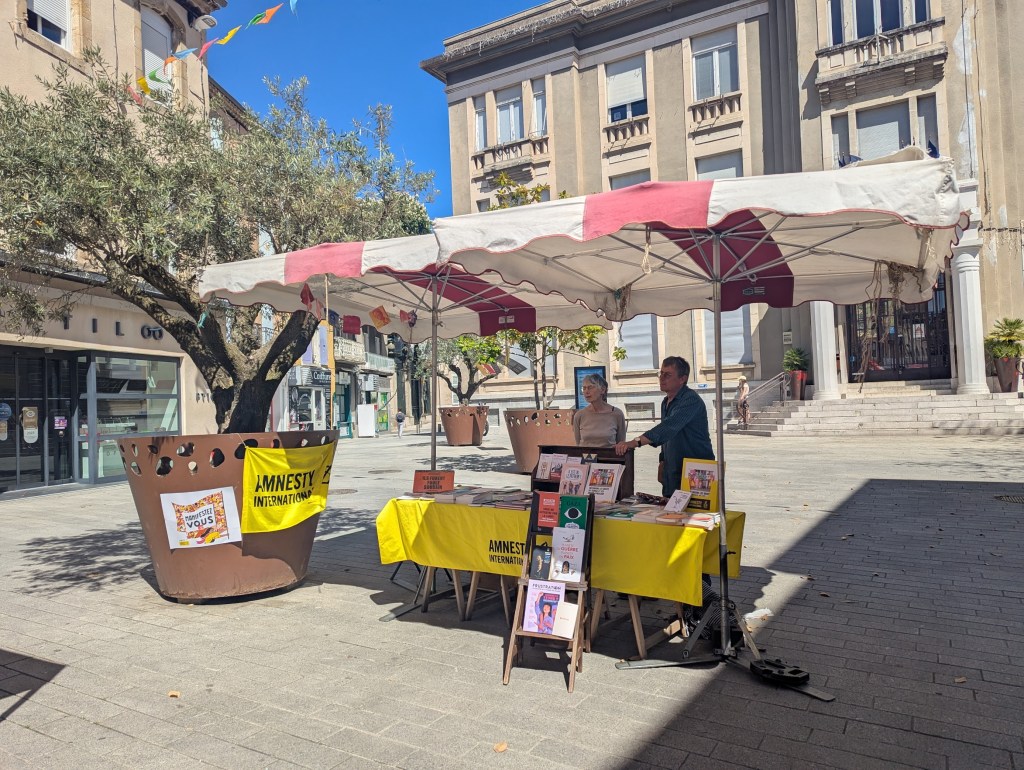 Après le repas, il y a eu en même temps une intervention sur la place des minorités dans le monde du travail animée par David (CGT) et Valérie (FSU) et la projection du film le nid et l’oiseau réalisé par le printemps écologique. Nous avons également eu la bonne surprise de voir le groupe local d’Amnesty International et le Secours Populaire nous rejoindre.