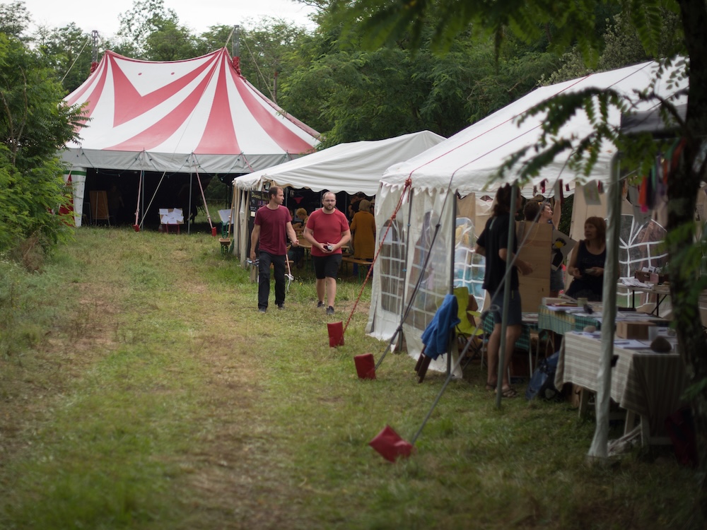 Le lieu se prêtait au calme, à la déconnexion, juste au bord de l’Eyrieux, sous les arbres… Et il faut absolument qu’on vous parle de la cantine, parce que les repas étaient excellents, cuisinés sur place, végé, avec des légumes direct producteur. Ce sont plusieurs personnes de Buge qui se sont proposées de s’occuper de la nourriture. Pour décharger l’organisation. Une vraie réussite!